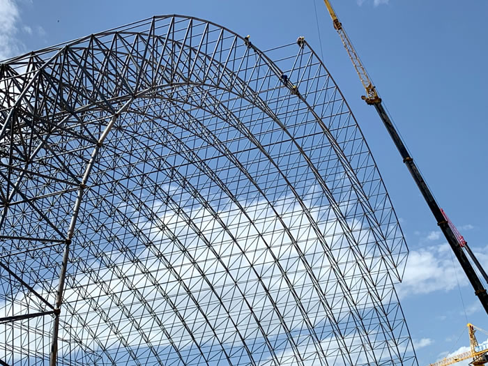 (2)网架加工前应对现场尺寸进行复测,确认无误后方可进行加工、安装;网架制作、运输、安装应遵守《空间网格结构技术规程》JGJ7-2010、《钢网架东莞螺栓球节点》JG/T 10-2009、《钢网架东莞螺栓球节点用高强度螺栓》 GB/T 16939-2016、《东莞钢结构东莞工程东莞施工规范》 GB50755-2012、《东莞钢结构东莞工程施工质量验收标准》 GB50205-2020。